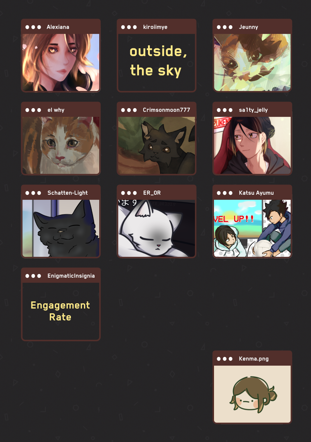 Artists: aijou ๐พ Alexiana ๐พ Can Megurin ๐พ Crimsonmoon777 ๐พ el why ๐พ ER_0R ๐พ Gryphmakes ๐พ Hibdazzle ๐พ Jeunny ๐พ Kathryn Chan ๐พ Katsu Ayumu ๐พ kenma frogboy ๐พ monoakina ๐พ Rubird ๐พ sa1ty_jelly ๐พ Schatten-Light ๐พ Sonia liao ๐พ sugartealeafs ๐พ Taruchinator ๐พ Zen Kitsune