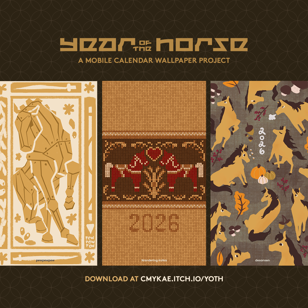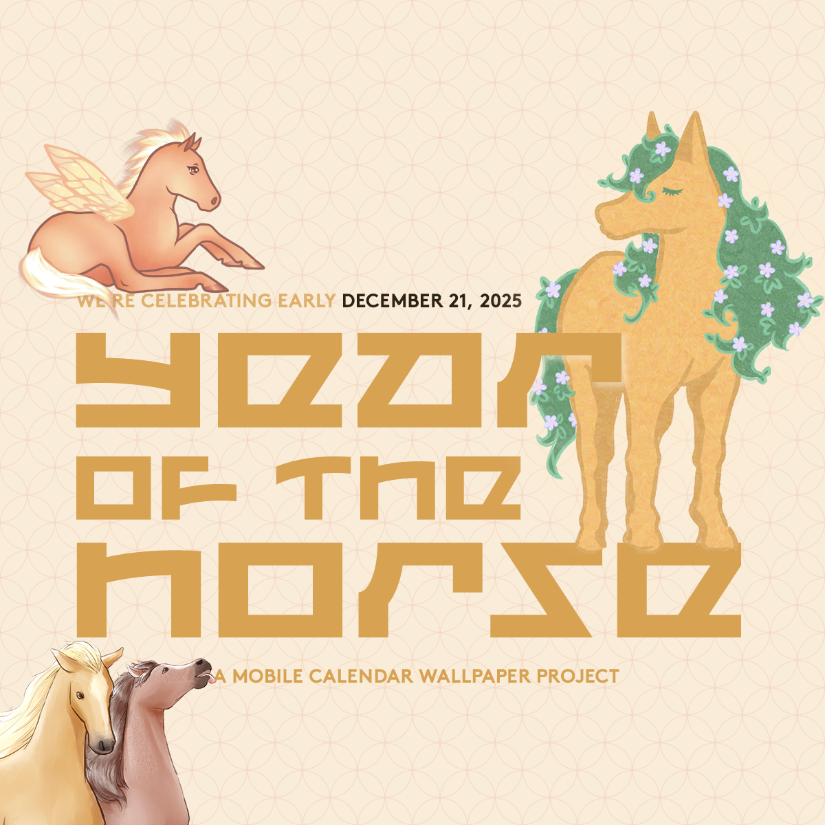 All Year of the Horse digital wallpapers are free to use for personal and non-commercial purposes only. You may not physically or digitally redistribute, repost, or sell Year of the Horse wallpapers. All rights belong to the artists. Do not claim as your own when using. Please credit the artist when using their work on your social media accounts.
